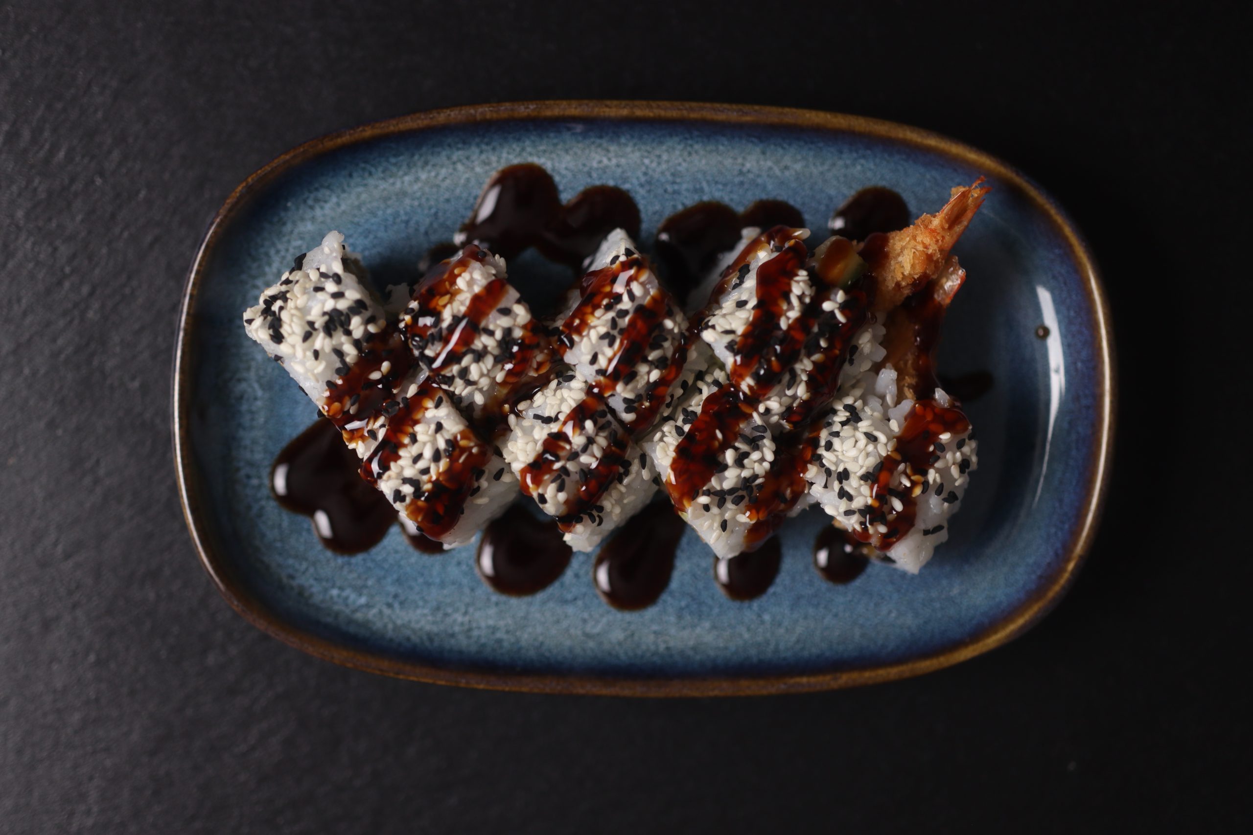Tempura reje, avocado, cucumber, sesame (8 stk.)
