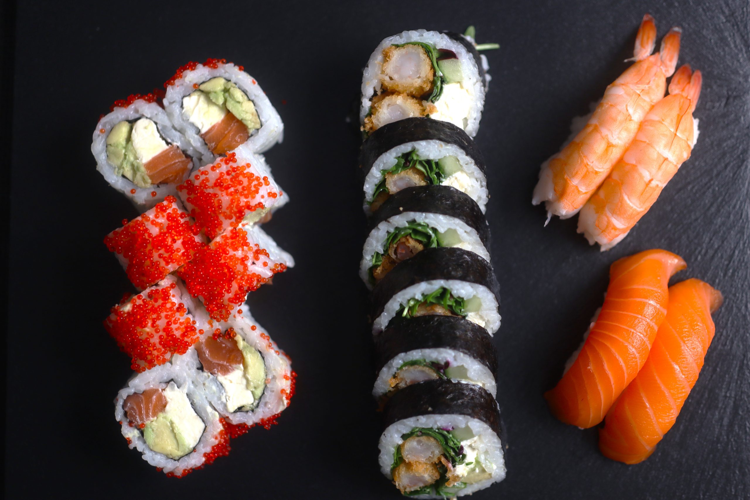 Alaska 8 Skt , Stor Tempura Roll 6 Stk, Nigiri Laks 2 St ,Nigiri Reje 2 Stk