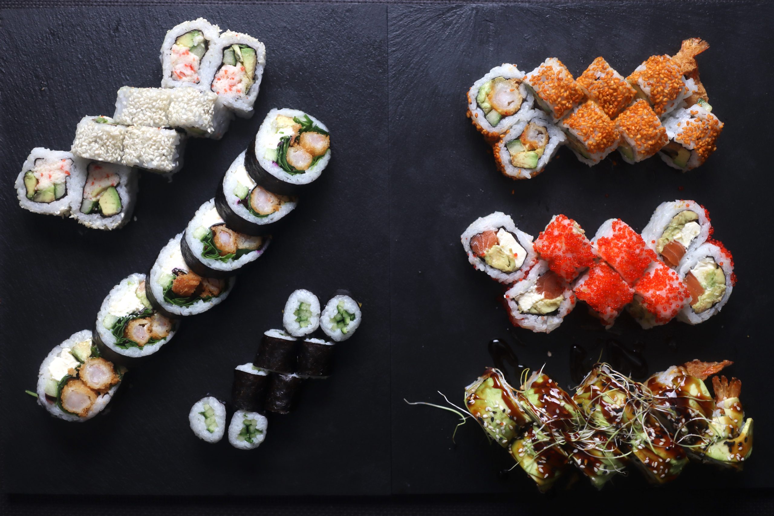 Hot Ebi (8 Stk.), Dragon Roll(8 Stk.)Alaska (8 Stk.), Califonia (8 Stk.), Hoso Maki Agruk 8stk, Stor Tempura Roll 6stk